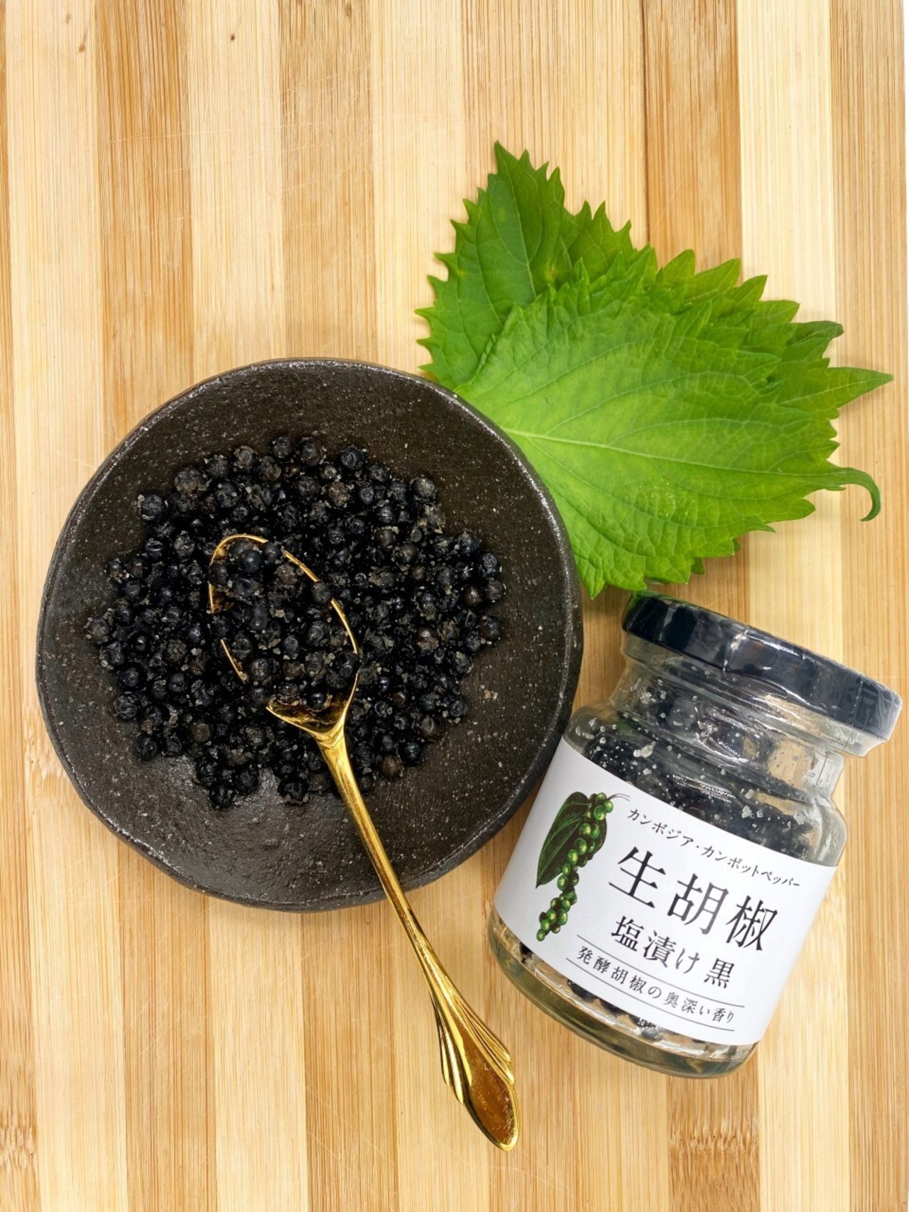 カンボジア産生コショウを湯がいて天然塩と混ぜ、発酵熟成させました。